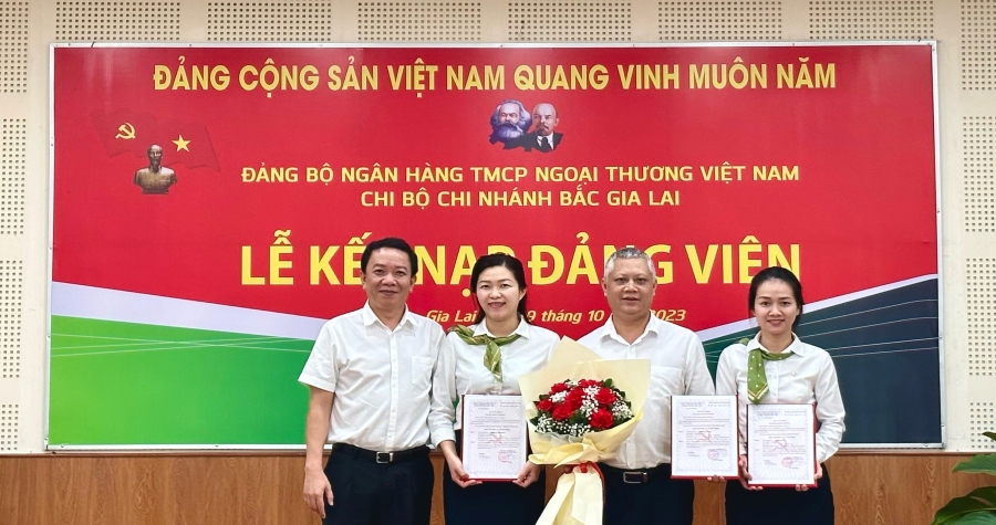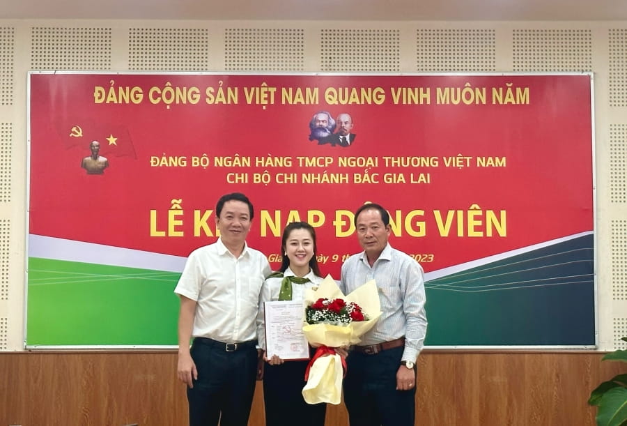 Sáng ngày 09/10/2023, Chi bộ Vietcombank Bắc Gia Lai đã tổ chức lễ kết nạp Đảng viên đối với quần chúng ưu tú Bùi Thị Thanh Tuyền và thực hiện trao quyết định công nhận đảng viên chính thức cho các đồng chí đảng viên dự bị của chi nhánh.