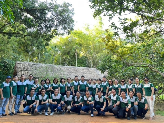 Chi bộ Vietcombank Tây Sài Gòn chụp ảnh tại làng Hoàng Trù - quê ngoại của Chủ tịch Hồ Chí Minh