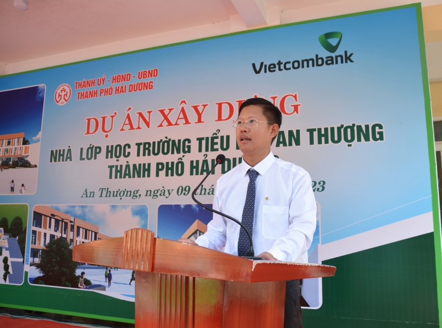 Phát biểu tại buổi lễ, ông Nguyễn Xuân Cao Cường - Giám đốc Vietcombank Hải Dương cho biết đây là công trình lớn nhất mà Vietcombank cam kết tài trợ từ trước đến nay tại tỉnh Hải Dương, đồng thời bày tỏ mong muốn các đồng chí lãnh đạo thành phố quan tâm chỉ đạo các đơn vị có liên quan đôn đốc, giám sát chặt chẽ trong quá trình thi công, đảm bảo chất lượng, hiệu quả và sớm đưa công trình vào sử dụng.