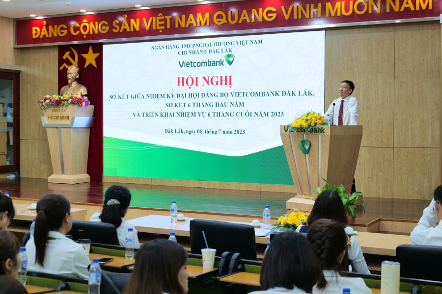 Phát biểu chỉ đạo tại hội nghị, ông Võ Công Trung - Bí thư Đảng uỷ, Giám đốc Vietcombank Đắk Lắk đã đánh giá tổng thể kết quả hoạt động và đánh giá cao các tham luận đã tập trung vào các vấn đề trọng điểm. Giám đốc chi nhánh yêu cầu toàn bộ cán bộ nhân viên luôn giữ bản lĩnh vững vàng, kiên định, chủ động trong suy nghĩ và hành động trước những khó khăn, thách thức, tuyệt đối nói không với các rủi ro đạo đức trong hoạt động kinh doanh. Chi nhánh cũng khuyến khích các cán bộ nhân viên đoàn kết, đồng lòng tăng cường trao đổi phát huy sáng kiến, giải pháp cho hoạt động kinh doanh của chi nhánh ngày càng phát triển bền vững.