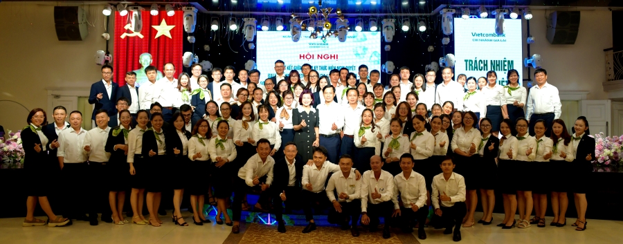 Tập thể cán bộ nhân viên, người lao động Vietcombank Gia Lai tại hội nghị