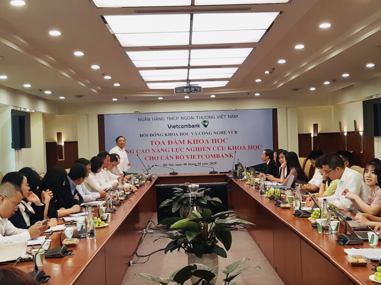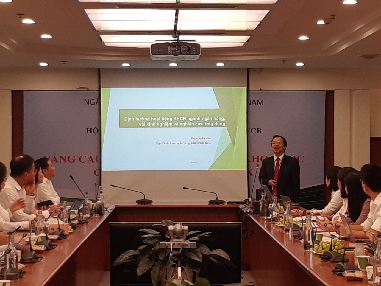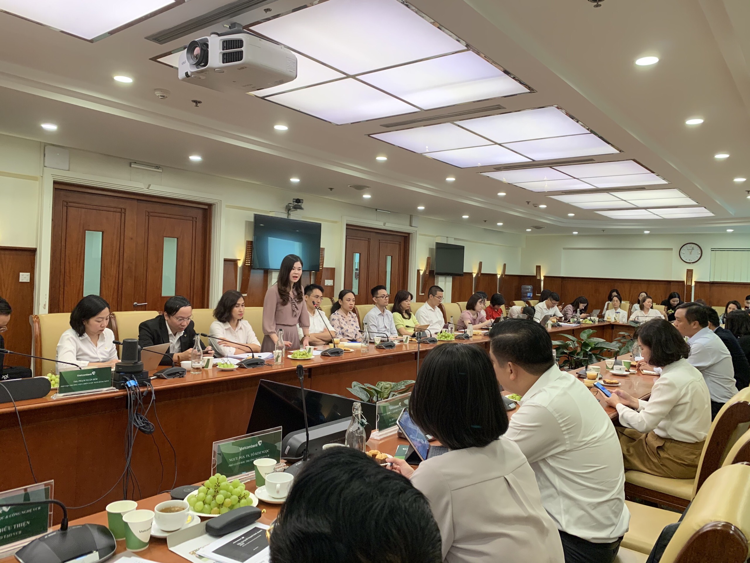 Tham dự buổi tọa đàm, về phía khách mời có ông Phạm Xuân Hòe - Phó Viện trưởng Viện Chiến lược Ngân hàng Nhà Nước Việt Nam (NHNN); về phía Vietcombank có đại diện cơ quan Thường trực HĐKH, đại diện các nhóm nghiên cứu, đại diện một số Chi nhánh và các Phòng/Ban/Trung tâm thuộc Trụ sở chính.