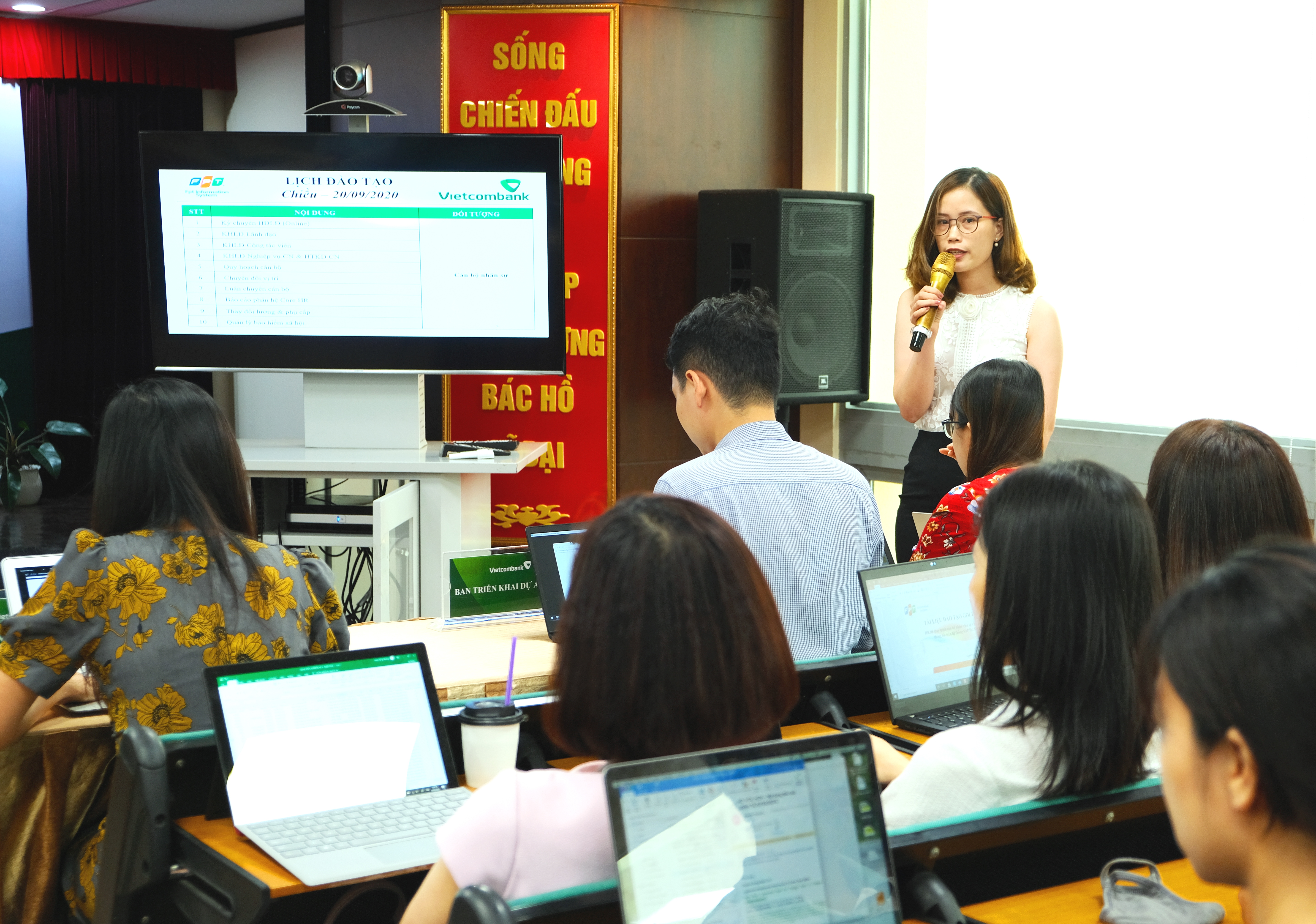 Đây là dự án trọng điểm của Khối Nhân sự Vietcombank, cung cấp giải pháp công nghệ cốt lõi và tăng cường sức mạnh, tính hệ thống, tính quản trị cho hệ thống nhân sự. Do đó, công tác đào tạo đóng vai trò then chốt để cán bộ có thể sử dụng và khai thác tốt các tính năng của hệ thống. Sau khóa đào tạo, hơn 600 cán bộ thuộc 03 đối tượng (cán bộ nhân sự, cán bộ tiền lương và người sử dụng khác) tham gia đào tạo sẽ được cấp tài khoản để thực hiện các thao tác trải nghiệm trên chương trình trước khi thực hiện Go-live hệ thống theo kế hoạch.