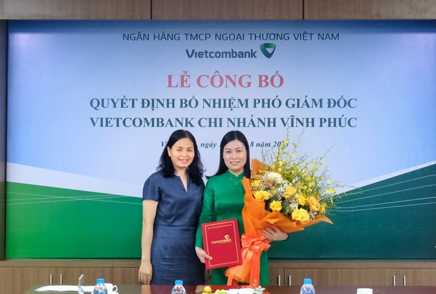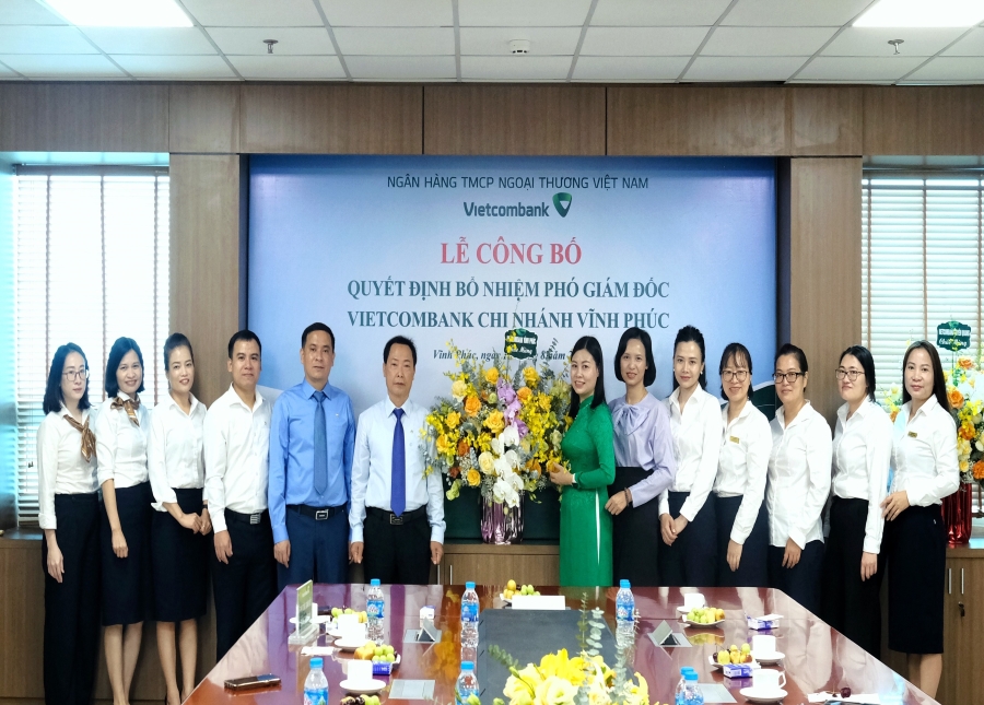 Tại buổi lễ, đại diện Ban Tổ chức và Nhân sự đã công bố quyết định số 1929/QĐ-VCB-TCNS ngày 14/8/2023 của Tổng Giám đốc về việc bổ nhiệm bà Hà Thị Minh Hoa - Trưởng phòng DVKH Vietcombank Vĩnh Phúc giữ chức vụ Phó Giám đốc Vietcombank Vĩnh Phúc kể từ ngày 15/8/2023.