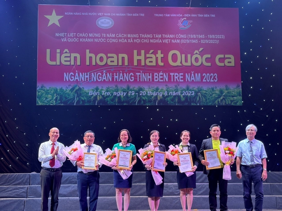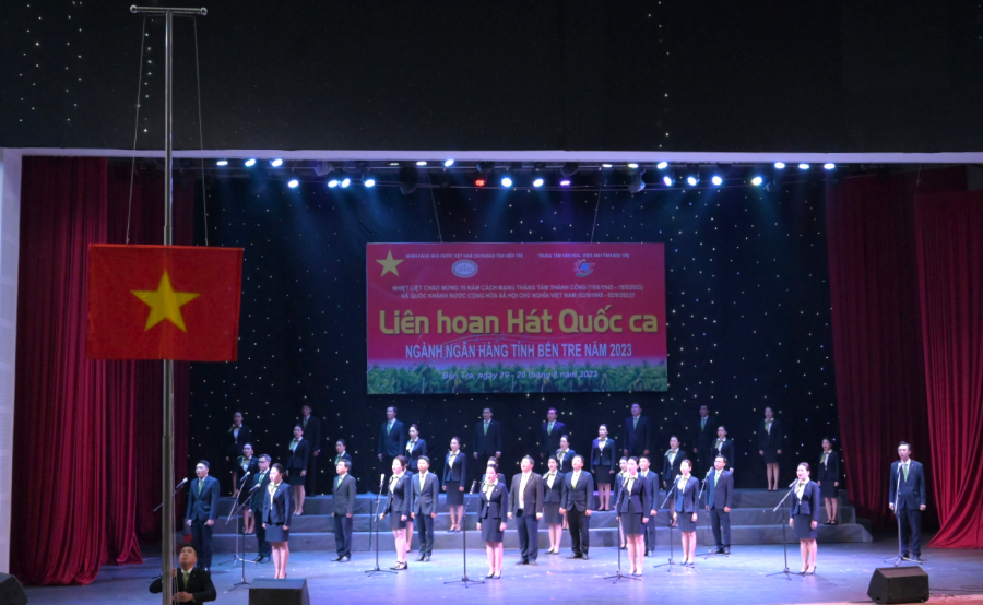 Trong hai ngày 19 và 20/8/2023, Ngân hàng Nhà nước chi nhánh tỉnh Bến Tre đã phối hợp Trung tâm Văn hóa - Điện ảnh tỉnh Bến Tre tổ chức Liên hoan “Hát Quốc ca” ngành ngân hàng Bến Tre năm 2023 tại Trung tâm Văn hoá Điện ảnh tỉnh.