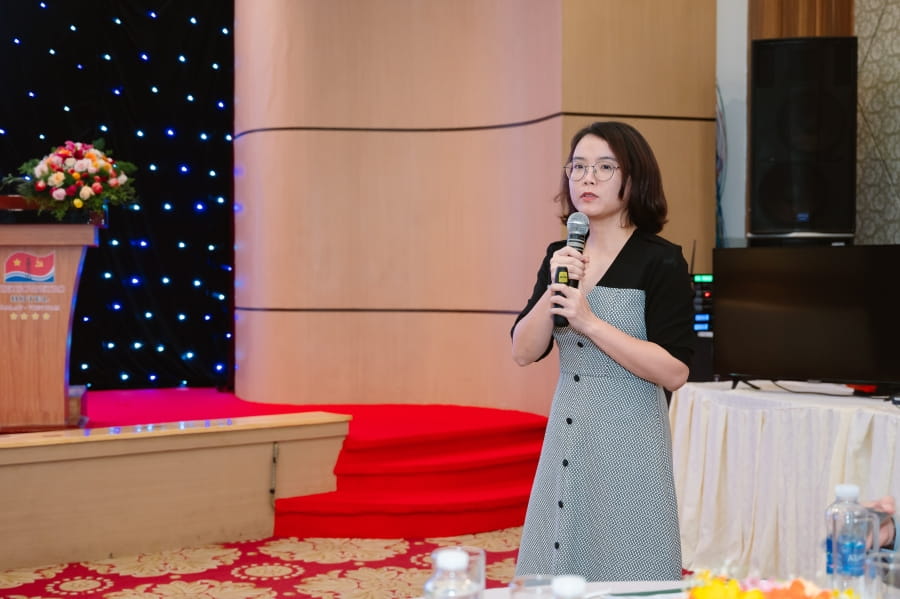 Bà Bùi Thị Thanh Thu - Giám đốc Ban khách hàng FDI Vietcombank phát biểu khai mạc tại chương trình tập huấn