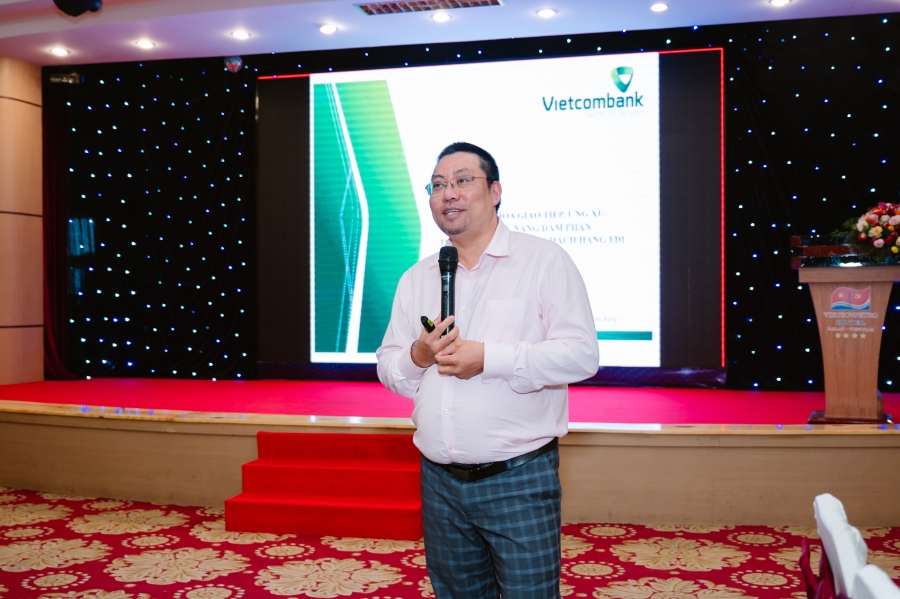 Tương tự Chương trình Đào tạo Đợt 1 tại Ninh Bình, các đại biểu và học viên đã được nghe các giảng viên nội bộ đại diện các Phòng/Ban/Trung tâm TSC của Vietcombank và chuyên gia bên ngoài trình bày các bài giảng/tham luận về các chủ đề: (i) TTQT-TTTM: Định hướng sản phẩm với khách hàng FDI và xu hướng thị trường; (ii) Quy định của pháp luật về quản lý ngoại hối và tác động đối với Doanh nghiệp FDI và Tổng quan hệ thống thanh toán tại Vietcombank; (iii) Một số lưu ý trong quá trình thẩm định, cấp tín dụng cho khách hàng FDI; (iv) Văn hóa giao tiếp, ứng xử và kỹ năng đàm phán trong giao dịch với khách hàng FDI. Bên cạnh đó, Chương trình tập huấn còn được tích hợp những trải nghiệm thực tế ý nghĩa, thiết thực với các kiến thức và kinh nghiệm về công tác phát triển khách hàng FDI, các tình huống giao tiếp với khách hàng nước ngoài, các năng lực và kỹ năng cần có của cán bộ quản lý khách hàng FDI do Ban Khách hàng FDI chia sẻ.