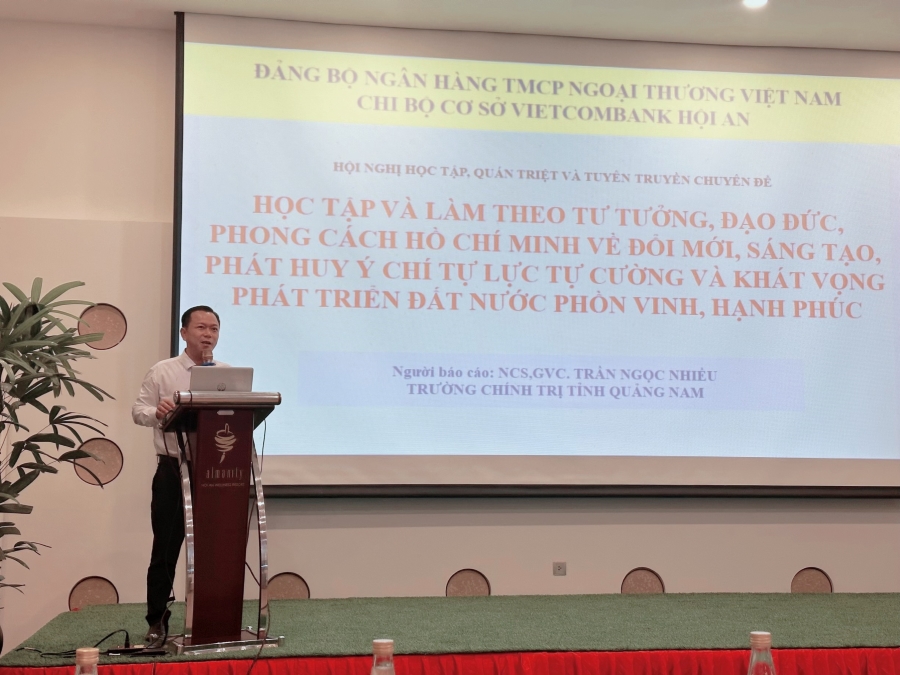 Ngày 26/08/2023, Chi bộ Vietcombank Hội An đã tổ chức hội nghị “Học tập và làm theo tư tưởng, đạo đức, phong cách Hồ Chí Minh” chuyên đề về đổi mới, sáng tạo, phát huy ý chí tự lực tự cường và khát vọng phát triển đất nước phồn vinh, hạnh phúc.
