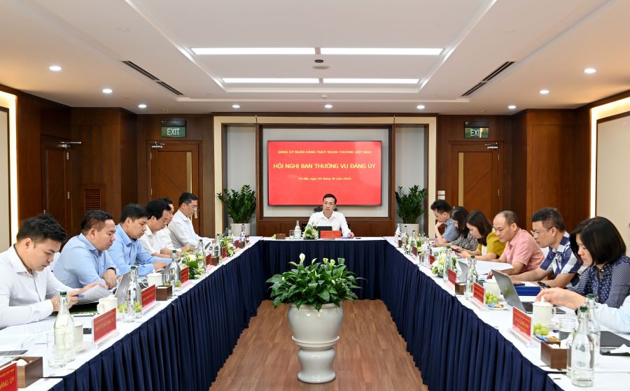Sáng ngày 03/10/2023, tại Trụ sở chính Vietcombank - 198 Trần Quang Khải, Hoàn Kiếm, Hà Nội, Đảng ủy Vietcombank đã tổ chức Hội nghị Ban Thường vụ Đảng ủy thường kỳ phiên họp tháng 10/2023 dưới sự chủ trì của đồng chí Phạm Quang Dũng - Ủy viên Ban Thường vụ Đảng ủy Khối Doanh nghiệp Trung ương (DNTW), Bí thư Đảng ủy, Chủ tịch HĐQT Vietcombank.