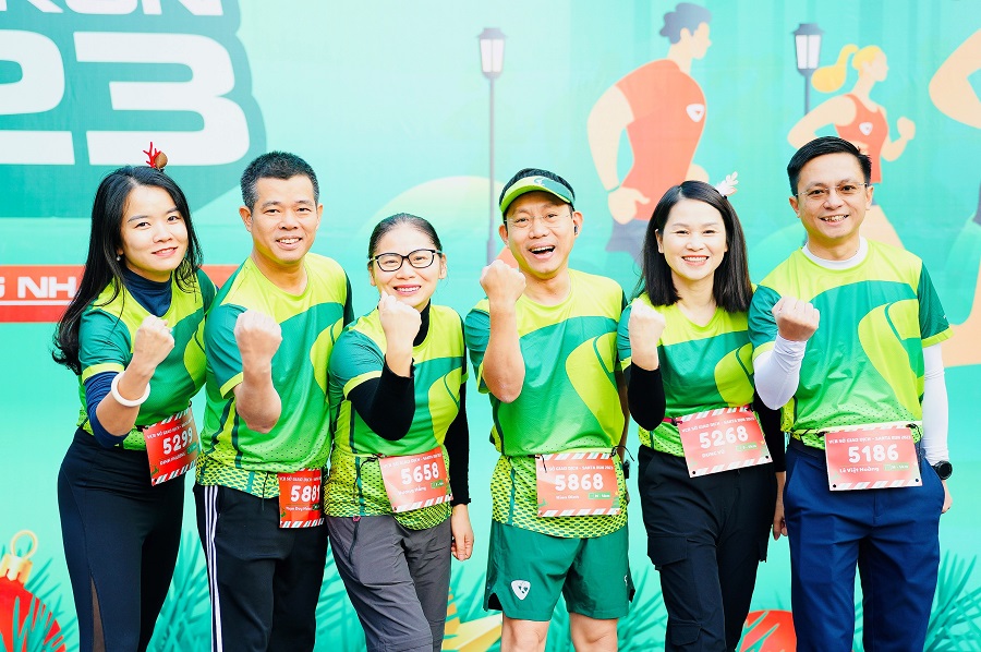 Ban Giám đốc Vietcombank Sở giao dịch cổ vũ và động viên tinh thần các vận động viên tham gia giải chạy