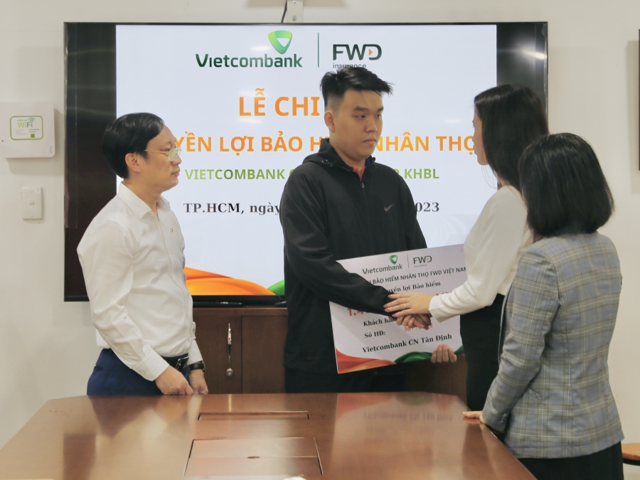 Được biết khách hàng đã tham gia các gói sản phẩm bảo hiểm “FWD nâng tầm vị thế 2.0” - một dòng sản phẩm bảo hiểm kết hợp giữa bảo vệ và đầu tư an toàn của bảo hiểm FWD Việt Nam từ năm 2022. Ngay sau khi nhận được thông tin khách hàng gặp rủi ro, Vietcombank Tân Định phối hợp cùng bảo hiểm FWD Việt Nam đã nhanh chóng tiến hành thực hiện các thủ tục chi trả quyền lợi bảo hiểm theo hợp đồng, động viên chia sẻ, giúp người thân của khách hàng sớm vượt qua khó khăn, ổn định cuộc sống.
