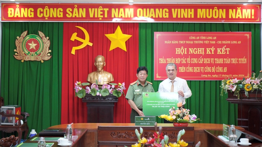 Ngày 17/01/2024, Vietcombank Long An và Công an tỉnh Long An đã tổ chức lễ ký kết thỏa thuận hợp tác về cung cấp dịch vụ thanh toán trực tuyến trên Cổng dịch vụ công Bộ Công an.
