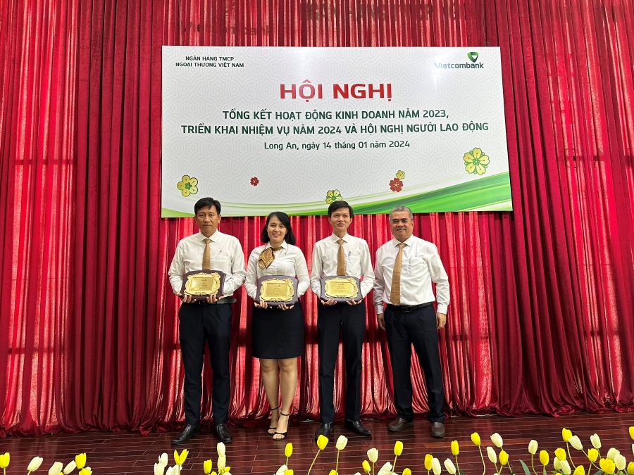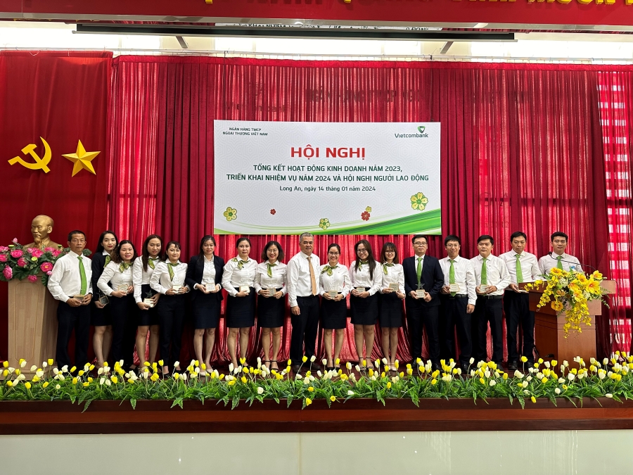 Năm 2023, Vietcombank Long An vinh dự được vinh danh Chi nhánh tiêu biểu hoàn thành tốt nhiệm vụ. Tại hội nghị, Ban giám đốc đã kịp thời biểu dương, khen thưởng những tập thể, cá nhân có thành tích xuất sắc, có nhiều đóng góp cho hoạt động của chi nhánh.