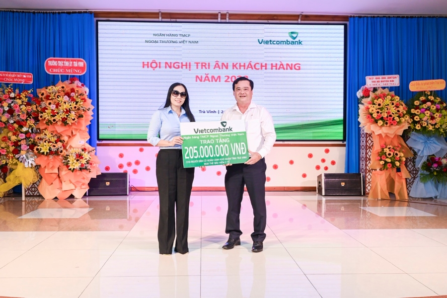 Cũng tại hội nghị, thừa ủy quyền của Ban lãnh đạo Vietcombank, ông Trang Văn Út - Phó Giám đốc Vietcombank Trà Vinh đã đại diện trao tặng số tiền 205 triệu đồng cho Bảo hiểm xã hội tỉnh Trà Vinh, tài trợ tặng sổ BHXH, thẻ BHYT cho người có hoàn cảnh khó khăn trên địa bàn tỉnh Trà Vinh.
