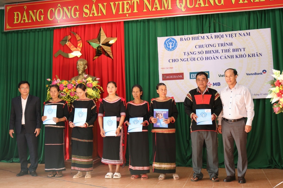 Đại diện BHXH Việt Nam trao tặng sổ BHXH và thẻ BHYT cho các trường hợp có hoàn cảnh khó khăn