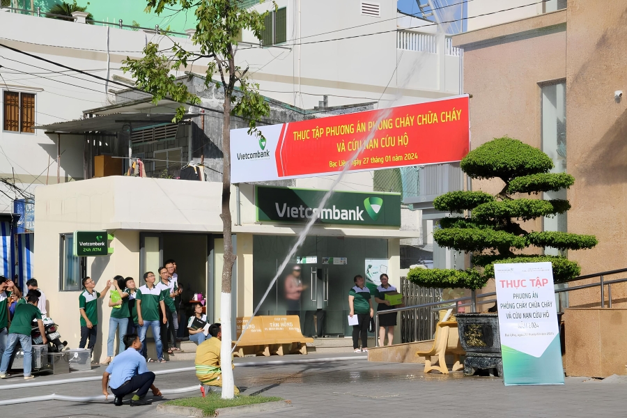 Sáng ngày 27/01/2024, Vietcombank Bạc Liêu đã phối hợp với Phòng cảnh sát phòng cháy, chữa cháy và cứu nạn, cứu hộ (PCCC&CNCH) - Công an tỉnh Bạc Liêu tổ chức diễn tập phương án chữa cháy tại trụ sở Vietcombank Bạc Liêu. Tham dự chương trình có đồng chí Lâm Văn Thà - Phó Giám đốc, Chủ tịch CĐCS Vietcombank Bạc Liêu và lực lượng PCCC cơ sở của chi nhánh.