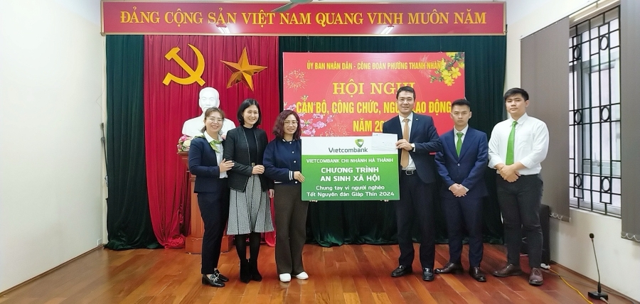 Đồng thời, Vietcombank Hà Thành cũng triển khai tặng quà các hộ gia đình có hoàn cảnh khó khăn tại phường Thanh Nhàn, quận Hai Bà Trưng, Hà Nội.