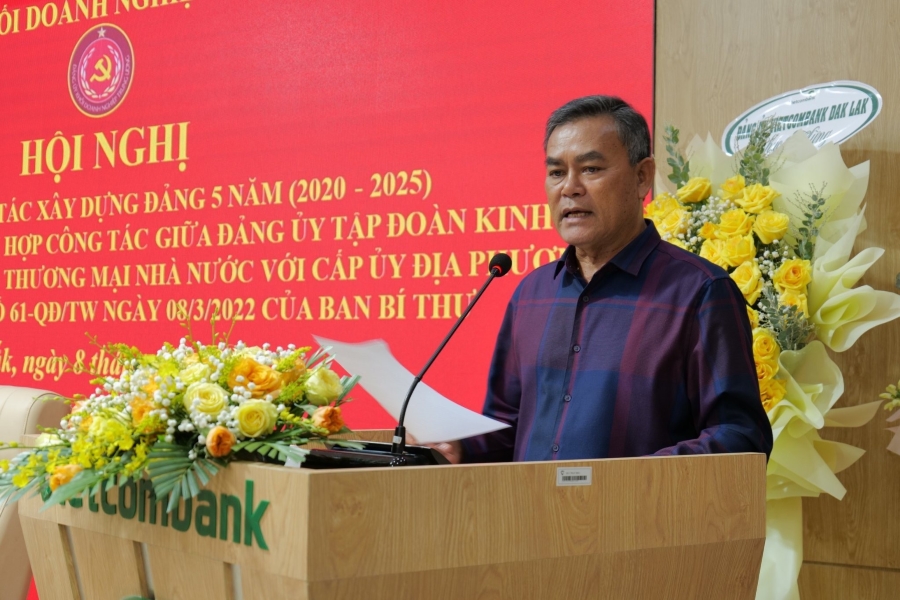 Tại hội nghị, đồng chí Hồng Quang, Ủy viên Ban thường vụ Đảng ủy, Thành viên HĐQT đã đại diện cho các Đảng ủy tập đoàn kinh tế, tổng công ty, ngân hàng thương mại nhà nước phát biểu về việc triển khai thực hiện quy chế phối hợp công tác theo quyết định số 61-QĐ/TW ngày 08/3/2022 của Ban Bí thư đã góp phần bảo đảm, giữ vững và tăng cường vai trò lãnh đạo của Đảng; tăng cường sự chỉ đạo, lãnh đạo tập trung, thống nhất của Đảng ủy tập đoàn kinh tế, tổng công ty, ngân hàng thương mại nhà nước gắn với sự lãnh đạo, chỉ đạo của các cấp ủy địa phương đối với các cấp ủy trực thuộc hiện đang hoạt động trên địa bàn tỉnh Đắk Lắk.