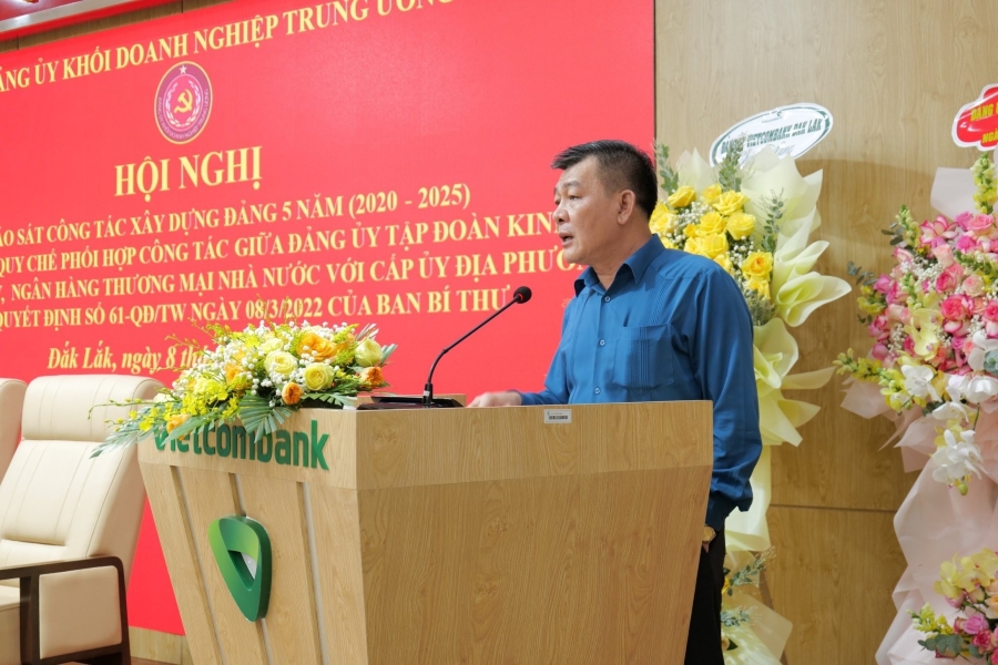 Chiều ngày 8/3/2024, tại trụ sở Vietcombank Đắk Lắk, Đảng ủy Khối Doanh nghiệp Trung ương đã tổ chức Hội nghị khảo sát công tác xây dựng Đảng 5 năm (2020 - 2025) và thực hiện quy chế phối hợp công tác giữa Đảng ủy Tập đoàn kinh tế, Tổng công ty, Ngân hàng thương mại nhà nước với cấp ủy địa phương theo quyết định số 61-QĐ/TW ngày 08/03/2022 của Ban Bí thư.