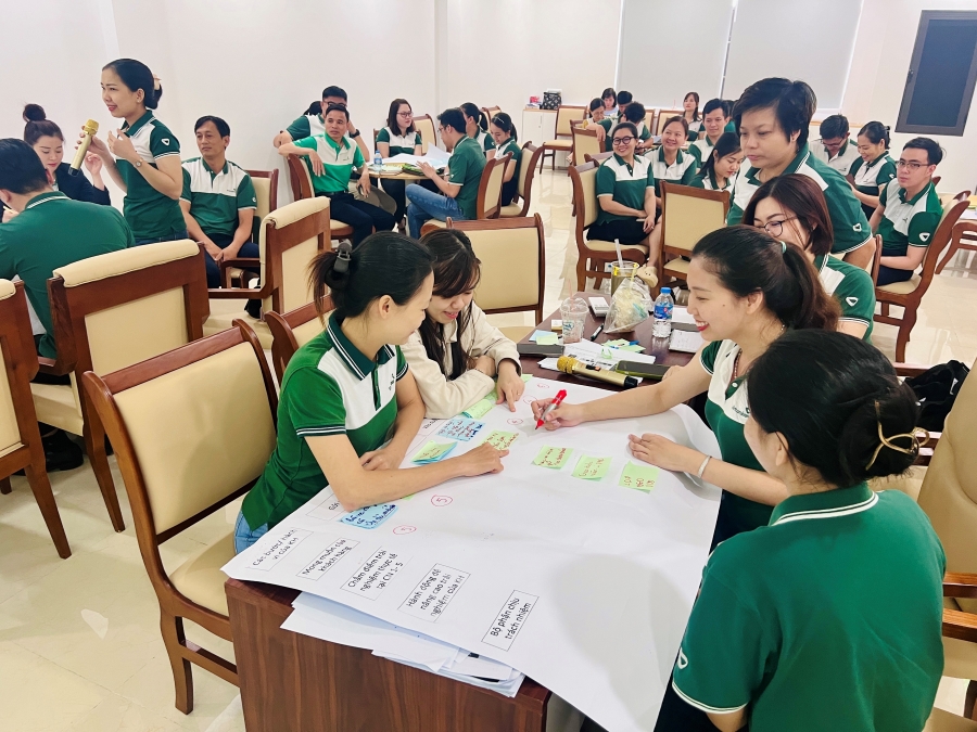Khóa học đi sát thực tế, học viên được thực hành và giải quyết các tình huống cụ thể để nâng cao chất lượng dịch vụ với phương châm “Khách hàng là trọng tâm”.