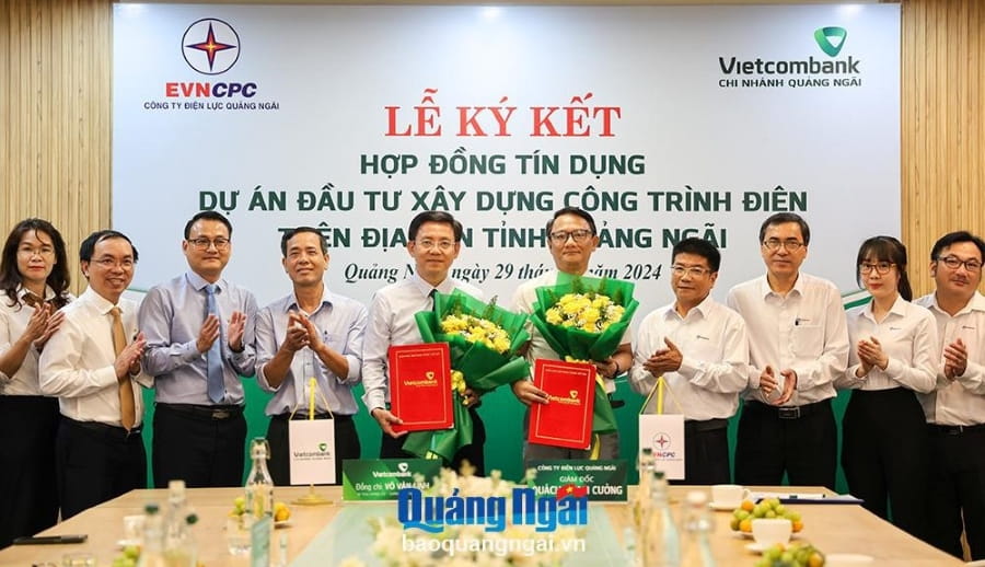 Sáng ngày 29/03/2024, tại trụ sở Vietcombank Quảng Ngãi đã diễn ra lễ ký kết hợp đồng tín dụng tài trợ cho các dự án đầu tư xây dựng công trình điện năm 2024 trên địa bàn tỉnh Quảng Ngãi giữa Vietcombank Quảng Ngãi và Công ty Điện lực Quảng Ngãi.