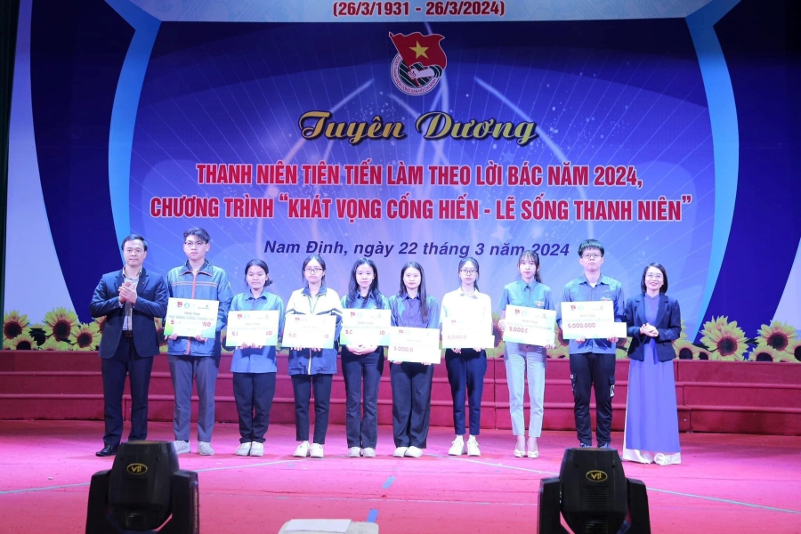 Sáng ngày 22/03/2024, tại Lễ tuyên dương thanh niên tiên tiến làm theo lời Bác năm 2024, chương trình “Khát vọng cống hiến - Lẽ sống thanh niên” do Ban thường vụ tỉnh đoàn Nam Định tổ chức, Vietcombank Nam Định đã trao 08 suất học bổng “Vững tương lai” cho học sinh, sinh viên trên địa bàn tỉnh.