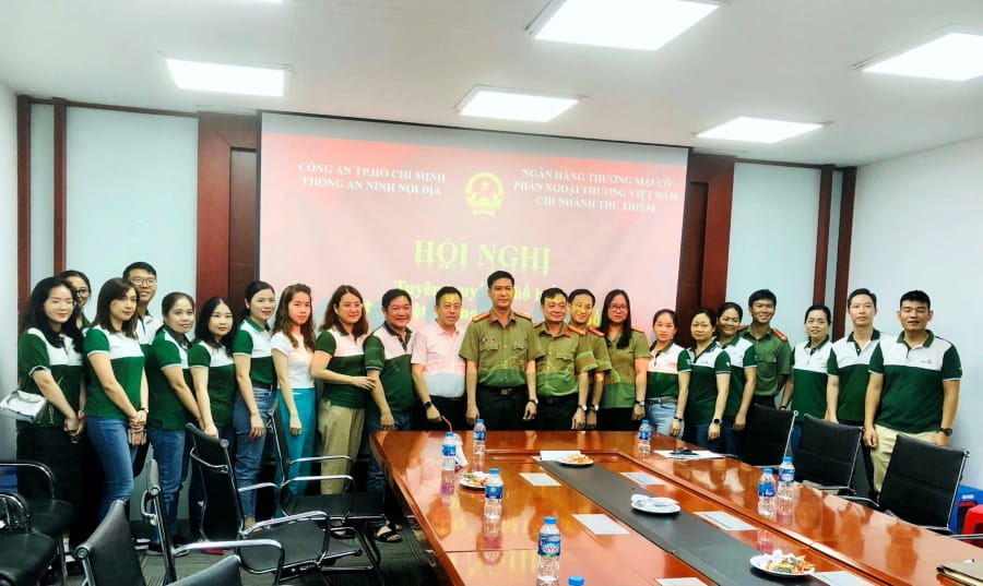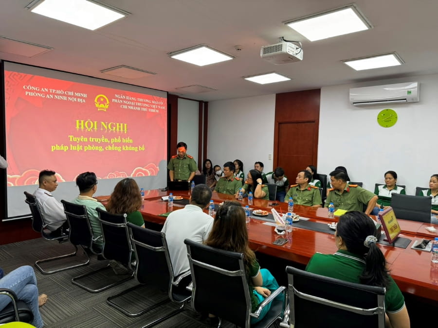 Ngày 06/4/2024, Vietcombank Thủ Thiêm phối hợp với Phòng an ninh nội địa Công an Tp. HCM tổ chức tuyên truyền, phổ biến pháp luật phòng, chống khủng bố cho CBNV và đội ngũ bảo vệ tại trụ sở chi nhánh.