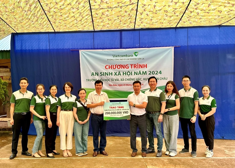 Ngày 25/5/2025, tại xã Chiềng Hặc, huyện Yên Châu, tỉnh Sơn La, phòng Công nợ Trụ sở chính đã phối hợp với Chi nhánh Vietcombank Sơn La tổ chức buổi lễ trao tặng kinh phí tài trợ xây dựng 2 phòng học cho điểm trường Tà Vài thuộc Trường tiểu học Tà Vài, bản Tà Vài, xã Chiềng Hặc, huyện Yên Châu, tỉnh Sơn La.