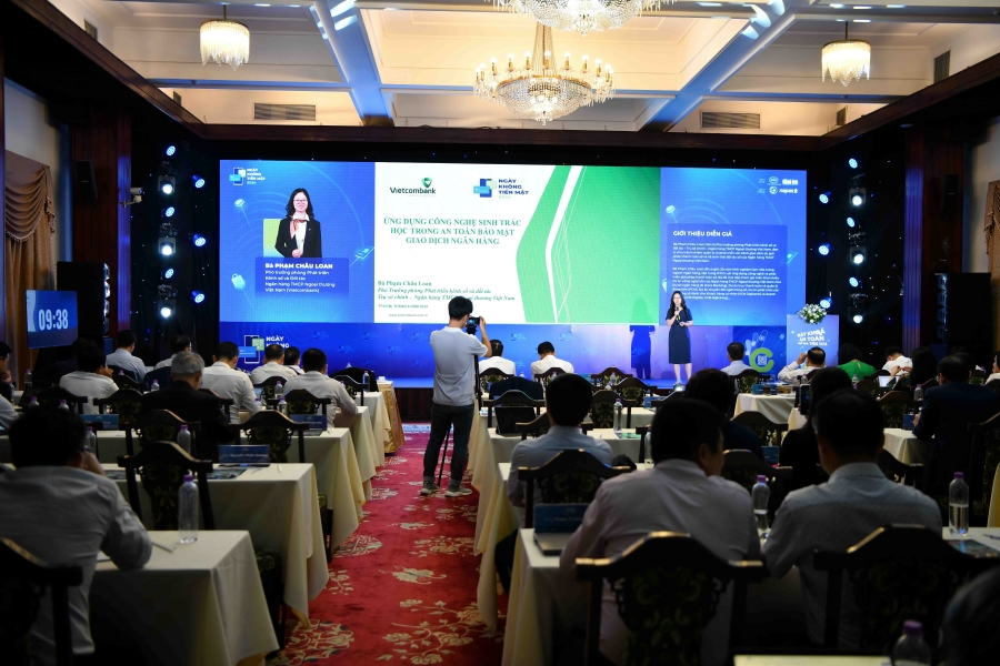 Cùng chiều ngày 14/6 tại phiên Hội thảo khai mạc Lễ hội, đại diện Vietcombank đã có bài tham luận ý nghĩa với chủ đề Ứng dụng công nghệ Sinh trắc học trong an toàn bảo mật giao dịch ngân hàng. Tham luận tổng hợp thông tin về bối cảnh chung, từ sự phát triển bùng nổ của dịch vụ ngân hàng số và thanh toán không tiền mặt đến tình hình tội phạm lừa đảo, gian lận trên không gian mạng ngày càng gia tăng và sự cần thiết phải ứng dụng các công nghệ mới nhất, cụ thể là công nghệ sinh trắc học với sự hỗ trợ từ nguồn dữ liệu công dân quốc gia của Bộ Công an để vừa gia tăng tiện ích, vừa tăng cường hiệu quả phòng ngừa và ngăn chặn các rủi ro, gian lận làm ảnh hưởng đến lợi ích của người dân khi giao dịch, thanh toán trên các kênh số. Để đáp ứng tuân thủ các qui định của NHNN tại Quyết định 2345/QĐ-NHNN ngày 18/12/2023 và hiệu lực từ 01/7/2024 tới đây, Vietcombank đã gấp rút tập trung nguồn lực để triển khai nhiều giải pháp đồng bộ nhằm thu thập thông tin sinh trắc học cho khách hàng tại các quầy giao dịch, trên kênh số VCB Digibank, quản lý hạn mức giao dịch tập trung, xác thực giao dịch trên VCB Digibank hay các giao dịch nạp ví điện tử…