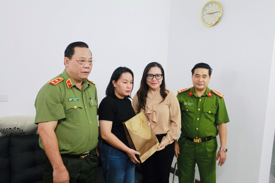 Đoàn công tác đã đến thăm, động viên Thượng tá Phan Kim Liên (SN 1942), nguyên cán bộ phòng Tham mưu Công an TP. Hà Nội. Đồng chí Phan Kim Liên là vợ của liệt sỹ CAND Vũ Văn Phan, nguyên chiến sĩ Công an Hà Nội, đã chiến đấu và anh dũng hy sinh tại chiến trường miền Nam.