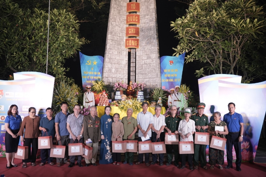 Trong không khí trang nghiêm, các đại biểu đã thành kính tưởng niệm các Anh hùng liệt sỹ. Sau nghi thức dâng hương, các đại biểu và ĐVTN cùng thắp những ngọn nến tri ân. Hàng trăm ngọn nến đã được đồng loạt thắp sáng thể hiện lòng biết ơn đối với những người con đã hy sinh cho Tổ quốc.