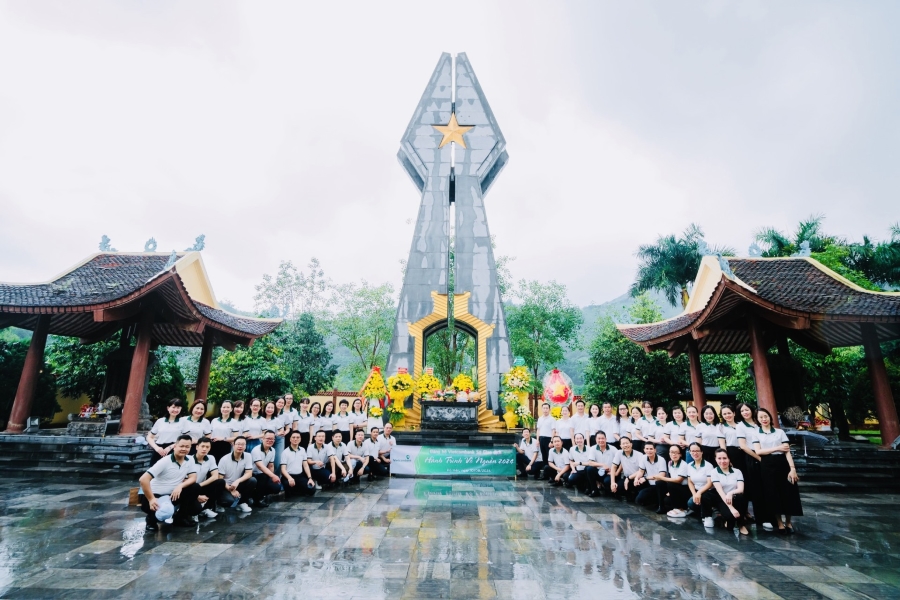 Đảng bộ Vietcombank Sở giao dịch chụp ảnh tại Đài tưởng niệm liệt sỹ - Khu di tích lịch sử quốc gia Pò Hèn