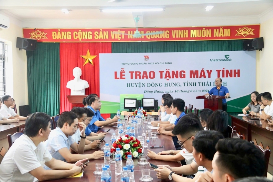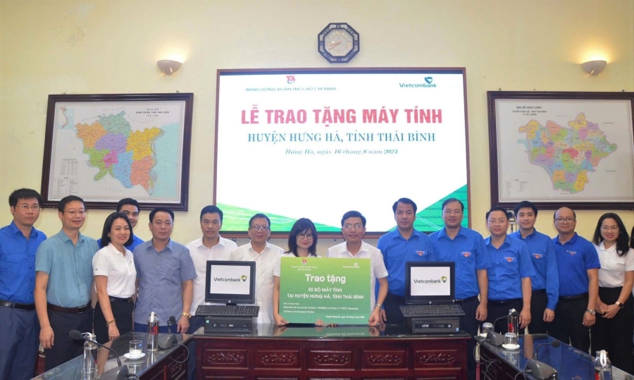 Sáng ngày 16/8/2024, Trung ương Đoàn Thanh niên cộng sản Hồ Chí Minh phối hợp với Chi đoàn 5 – Phê duyệt tín dụng & Quản lý nợ Vietcombank Trụ sở chính, Chi đoàn 14 – Trung tâm Định giá tài sản Vietcombank và Chi đoàn cơ sở Vietcombank Thái Bình tổ chức Lễ trao tặng 50 bộ máy tính cho huyện Hưng Hà và 50 bộ máy tính cho huyện Đông Hưng, tỉnh Thái Bình.