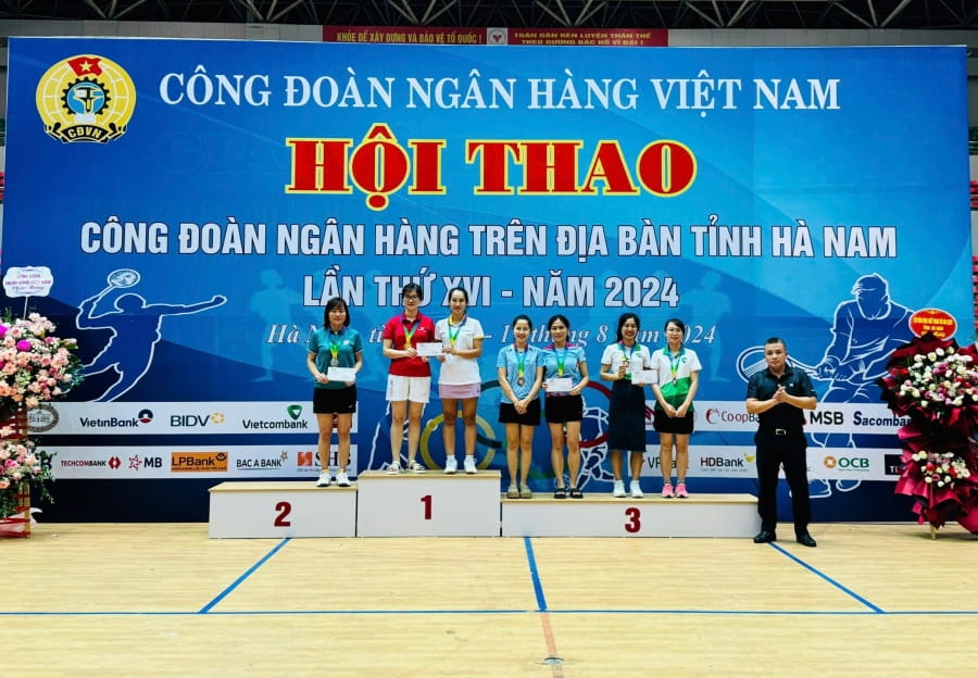 Được sự quan tâm, tạo điều kiện và chỉ đạo sát sao từ Ban Giám đốc, BCH Công đoàn, tập thể cán bộ, nhân viên, người lao động của chi nhánh đã tích cực đăng ký tham gia và tập luyện nghiêm túc chuẩn bị cho hội thao. Kết thúc hội thao, Vietcombank Hà Nam đã đạt được một số thành tích đáng khích lệ như: vô địch môn bóng đá nam, giải ba cầu lông đôi nữ, giải ba cầu lông đơn nữ, qua đó góp phần vào thành công chung của Hội thao ngành Ngân hàng trên địa bàn tỉnh năm 2024.