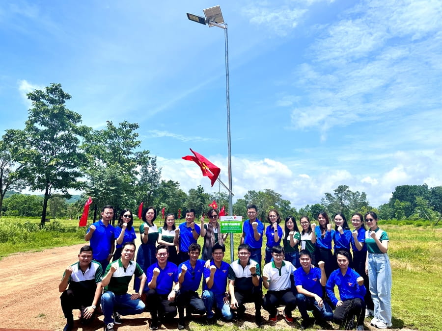 Cụm Đoàn thanh niên Vietcombank Nam Trung Bộ và Tây Nguyên chụp hình kỷ niệm cùng Công trình Thắp sáng đường biên