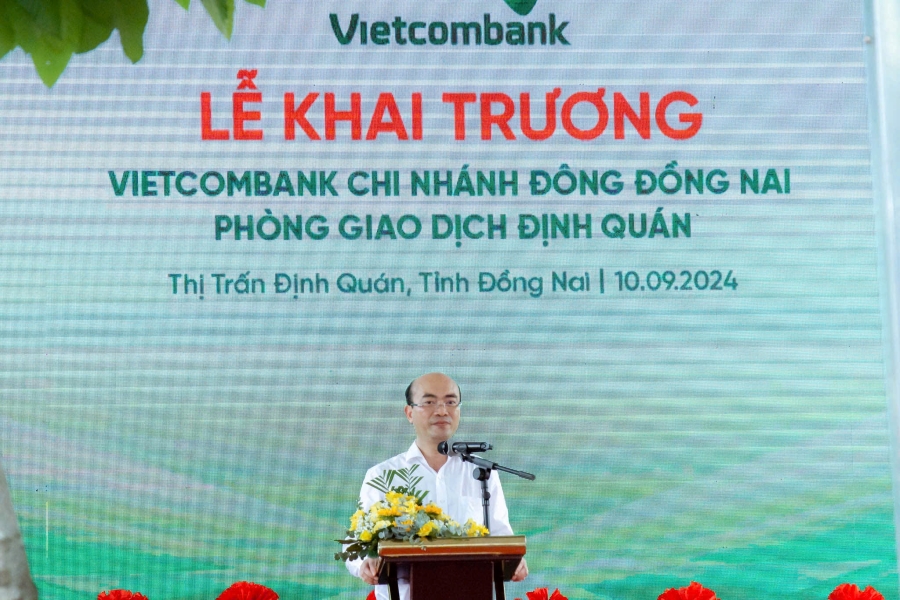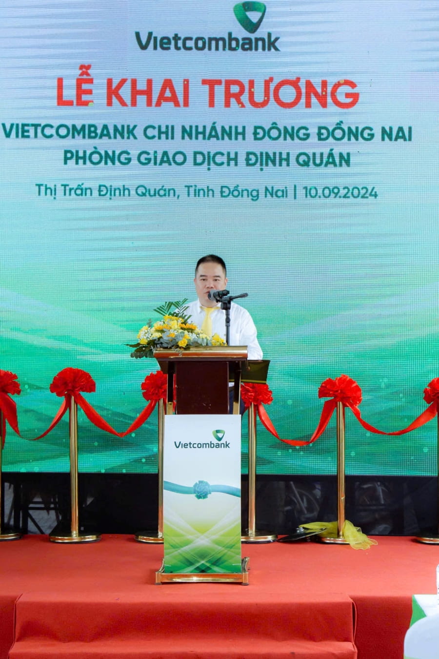 Phát biểu tại buổi lễ, ông Trần Thành Nam-Bí thư chi bộ, Giám đốc Vietcombank Đông Đồng Naiđã gửi lời cảm ơn sâu sắc đến Ngân hàng Nhà nước tỉnh Đồng Nai và chính quyền địa phương huyện Định Quán đã tạo điều kiện để PGD Định Quán khai trương và đi vào hoạt động thuận lợi. Nằm trong kế hoạch mở rộng mạng lưới, nâng cao chất lượng phục vụ khách hàng, phòng giao dịch Định Quán không chỉ là sự mở rộng về quy mô, mà còn thể hiện cam kết của Chi nhánh cung cấp những dịch vụ tài chính chất lượng cao, tiện ích và chuyên nghiệp đến với khách hàng. Đây là bước tiến mới trong chiến lược phát triển bền vững của Chi nhánh, hướng tới mục tiêu trở thành đối tác tin cậy, đồng hành cùng sự phát triển của quý khách hàng.