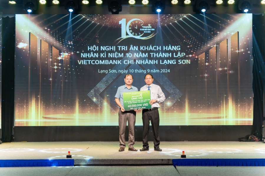 Ngày 13/9/2024, Vietcombank Lạng Sơn cùng phối hợp với Ban Dân vận TW, TW Hội Chữ thập đỏ Việt Nam, Lãnh đạo tỉnh và Hội Chữ thập đỏ tỉnh Lạng Sơn tặng quà cho 30 hộ gia đình tại huyện Chi Lăng, tỉnh Lạng Sơn bị ảnh hưởng bởi cơn bão số 03. Thông qua chương trình, Chi nhánh cũng gửi lời thăm hỏi, chia sẻ và động viên các gia đình vượt qua khó khăn, sớm khắc phục hậu quả cơn bão để ổn định cuộc sống.