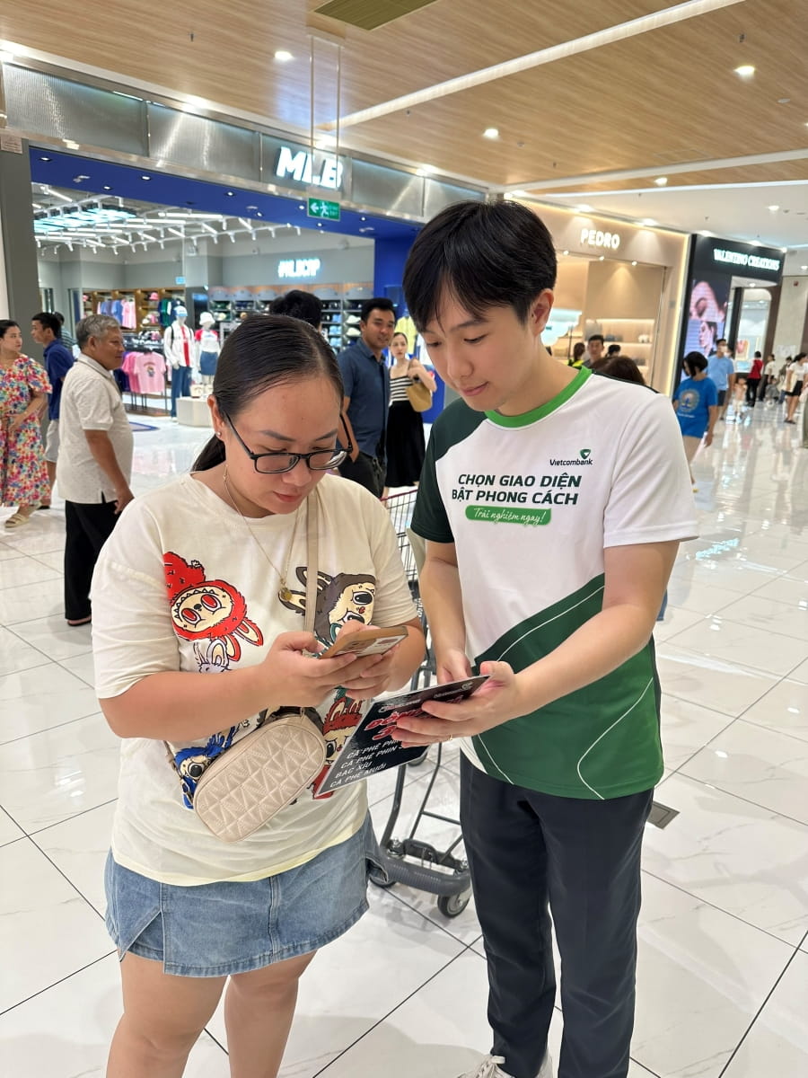 Đoàn viên Vietcombank Huế nhiệt tình hỗ trợ khách hàng sử dụng dịch vụ VCB Digibank