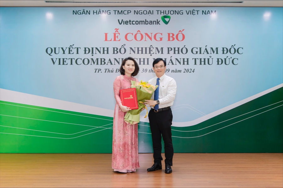 Sáng ngày 30/9/2024, tại trụ sở Vietcombank Thủ Đức, 50A, Đặng Văn Bi, Khu phố 4, phường Bình Thọ, thành phố Thủ Đức, TP.HCM đã diễn ra lễ công bố quyết định bổ nhiệm Phó Giám đốc Chi nhánh Thủ Đức.