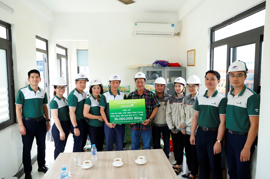 Ngày 18/9/2024, với tinh thần khẩn trương và kịp thời đồng hành cùng doanh nghiệp là khách hàng của Vietcombank Chương Dương, đoàn ASXH của Chi nhánh do ông Nguyễn Bá Minh - Bí thư Chi bộ, Giám đốc Chi nhánh làm trưởng đoàn đã tới thăm và trao quà cho Công ty CP Đóng tàu và vận tải biển Nam Phát, TX Quảng Yên. Tại đây, lãnh đạo Công ty CP Đóng tàu và vận tải biển Nam Phát cho biết: Bão số 3 đổ bộ đã gây thiệt hại nặng nề đến hạ tầng cơ sở đơn vị với tổng thiệt hại ước tính trên 200 tỷ đồng. Bão làm hơn 100.000m2 nhà xưởng bị tốc mái, sập đổ; nhiều phương tiện tàu, thuyền đang đóng mới, sửa chữa tại nhà máy bị hư hại; khu vực bị mất điện trên diện rộng khiến hoạt động sản xuất tạm thời đình hoãn…