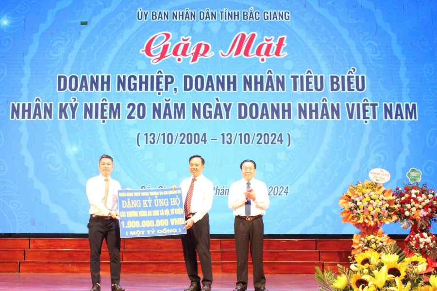 Chiều ngày 09/10/2024, Vietcombank Bắc Giang đã tham dự chương trình gặp mặt, biểu dương doanh nghiệp, doanh nhân tiêu biểu do UBND tỉnh Bắc Giang tổ chức nhân kỷ niệm 79 năm ngày Bác Hồ gửi thư cho giới Doanh nhân Việt Nam 13/10 (1945-2024) và 20 năm ngày Doanh nhân Việt Nam 13/10/2004 - 13/10/2024.