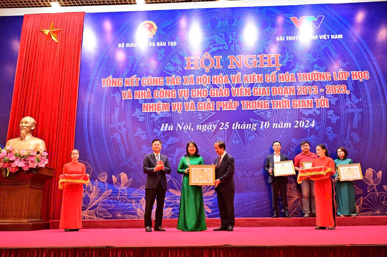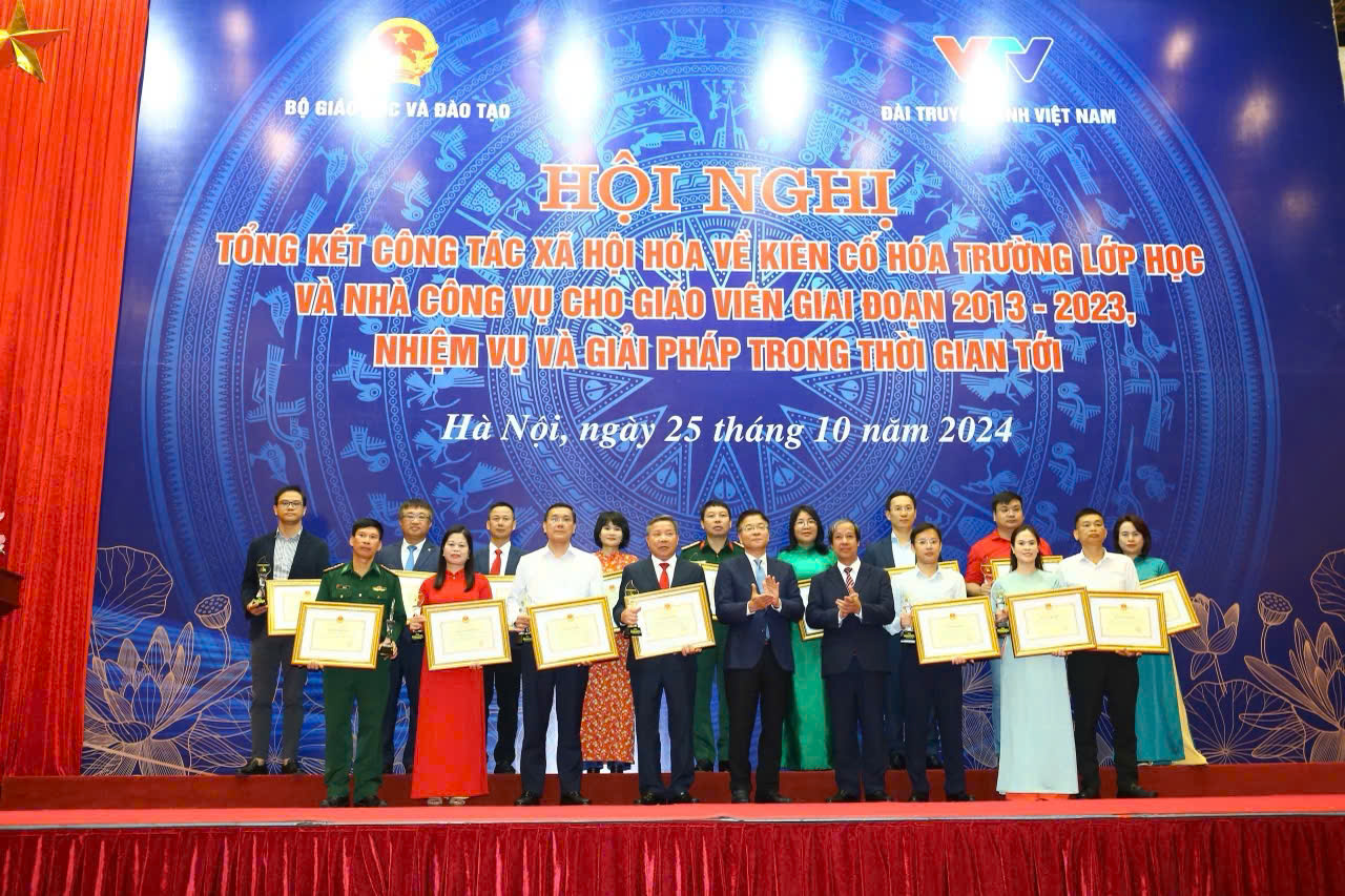 Tại hội nghị, 37 tập thể, 4 hộ gia đình và 9 cá nhân có thành tích xuất sắc trong công tác xã hội hóa về kiên cố hóa trường, lớp học và nhà công vụ cho giáo viên giai đoạn 2013-2023 được trao tặng Bằng khen của Bộ trưởng Bộ Giáo dục và Đào tạo.