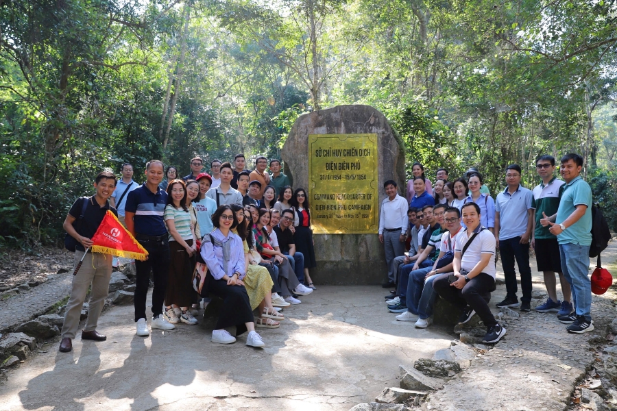 Đoàn Vietcombank Hải Phòng chụp ảnh lưu niệm tại Sở chỉ huy chiến dịch Mường Phăng.