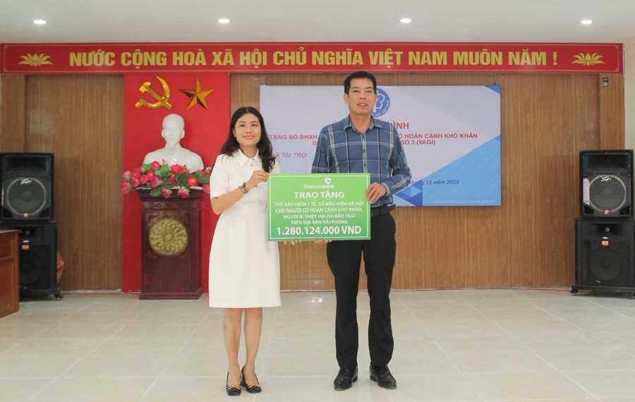 Ngày 06/11 và ngày 14/11/2024, Vietcombank Hải Phòng phối hợp với Bảo hiểm xã hội thành phố Hải Phòng đã tổ chức lễ trao tặng s BHXH, thẻ BHYT tại các quận huyện.
