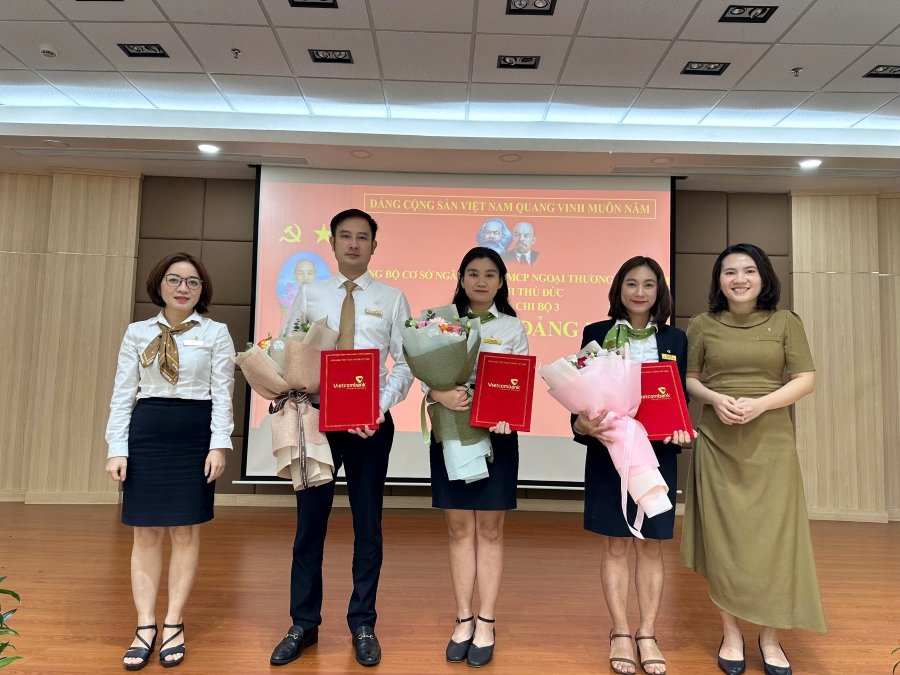 Chiều ngày 12/11/2024, tại trụ sở Chi nhánh, Đảng bộ cơ sở Vietcombank Thủ Đức đã trang trọng tổ chức lễ kết nạp Đảng cho 3 quần chúng ưu tú là đồng chí Trương Bá Học - Phó Trưởng phòng Hành chính nhân sự; đồng chí Võ Thị Bích Vân - Uỷ viên BCH Chi đoàn cơ sở, Chuyên viên phòng Dịch vụ khách hàng và đồng chí Lâm Hoàng Thu Hiền - Chuyên viên phòng Dịch vụ khách hàng, Vietcombank Thủ Đức.