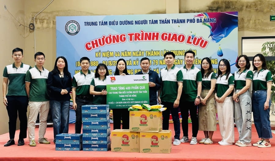 Sáng ngày 30/11/2024, đại diện Chi bộ 2 - Đảng bộ Vietcombank Đà Nẵng và Chi đoàn Xung kích - Đoàn cơ sở Vietcombank Đà Nẵng đã phối hợp tổ chức chương trình an sinh xã hội, thực hiện trao tặng 400 phần quà cho các bệnh nhân tại Trung tâm điều dưỡng người tâm thần TP. Đà Nẵng.
