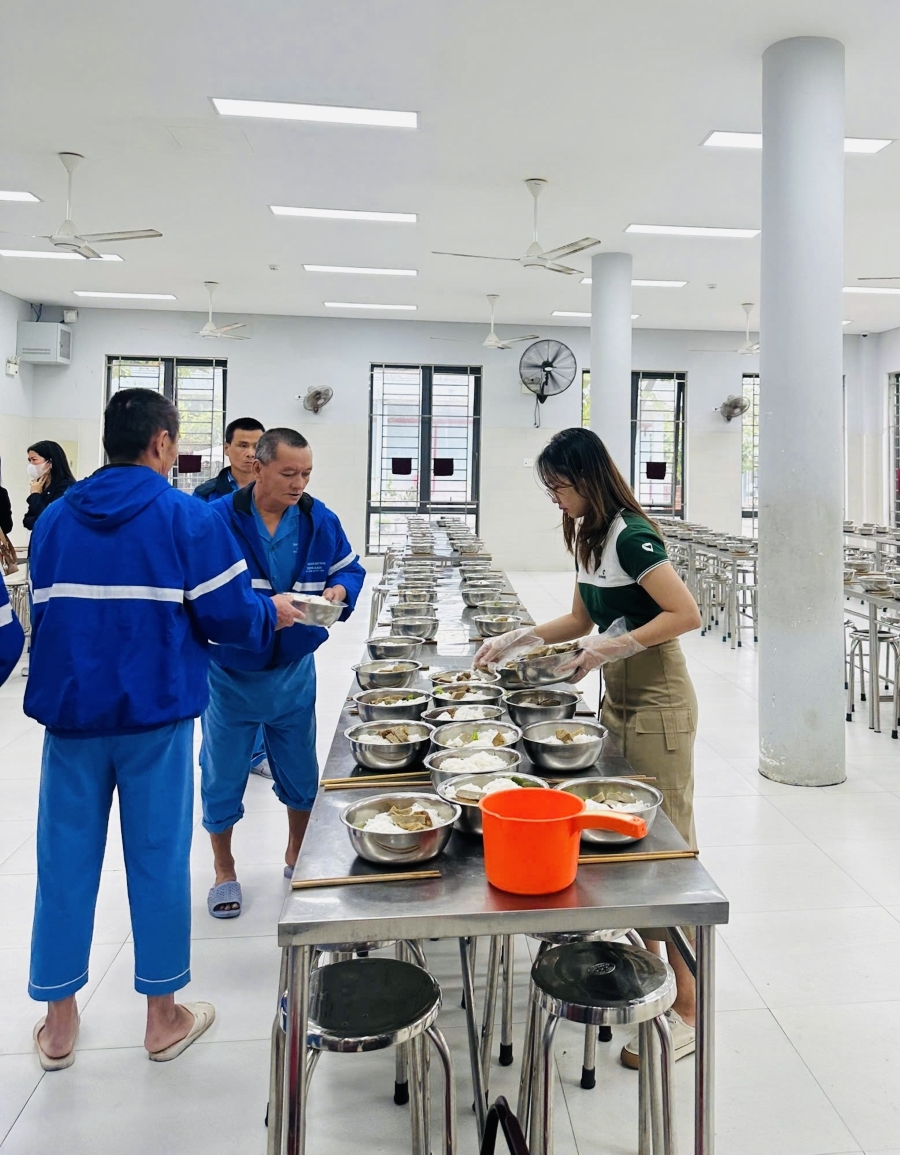 Tại trung tâm, đoàn công tác cũng đã trực tiếp tự tay chuẩn bị bữa trưa cho các bệnh nhân. Qua những suất ăn ấm nóng được ân cần gửi đến người bệnh, Đoàn công tác hi vọng sẽ góp phần cải thiện bữa ăn, tiếp thêm niềm tin và nghị lực trong cuộc sống cho các bệnh nhân đang điều trị tại trung tâm.