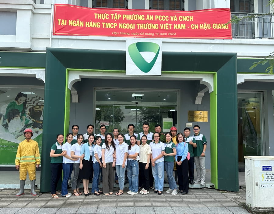 Sáng ngày 08/12/2024, Vietcombank Hậu Giang tổ chức thực tập phương án phòng cháy chữa cháy và cứu nạn, cứu hộ (PCCC&CNCH) năm 2024 tại trụ sở Chi nhánh.