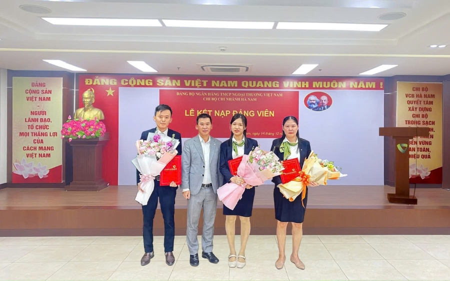 Ngày 14/12/2024, Chi bộ cơ sở Vietcombank Hà Nam đã trang trọng tổ chức Lễ kết nạp đảng viên mới cho 3 quần chúng ưu tú, nâng tổng số đảng viên tại Chi bộ lên 34 đảng viên.