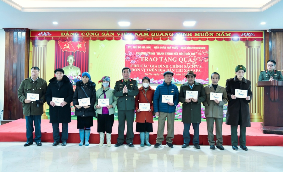 Đoàn cũng đã trao tặng 40 suất quà cho các gia đình chính sách, học sinh có hoàn cảnh khó khăn trên địa bàn thị xã Sa Pa, tỉnh Lào Cai, mỗi suất quà trị giá 1 triệu đồng và hỗ trợ tu sửa, xây dựng sân chơi thiếu nhi cho trường mầm non Lủ Khẩu, xã Ngũ Chỉ Sơn, Sa Pa. Những món quà này không chỉ mang đến sự hỗ trợ về vật chất, mà còn thể hiện tình cảm, sự sẻ chia của các đoàn viên thanh niên đối với cộng đồng, góp phần làm ấm lòng những gia đình khó khăn trong mùa đông.
